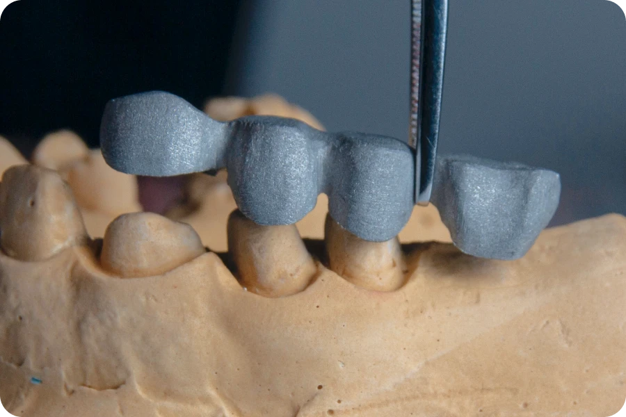 - Prise d’empreinte : Une empreinte est prise pour fabriquer un bridge parfaitement ajusté à la dentition du patient.